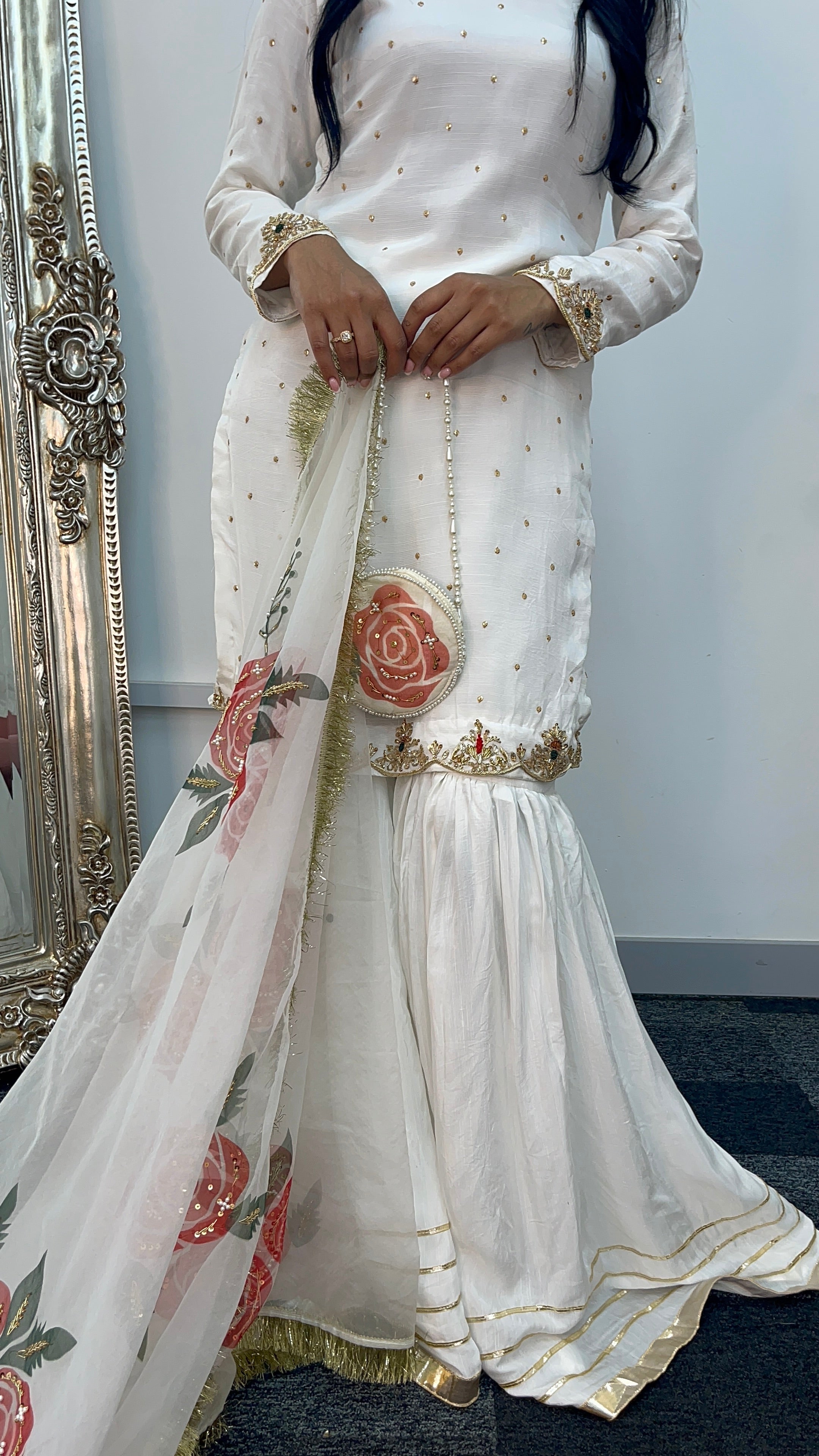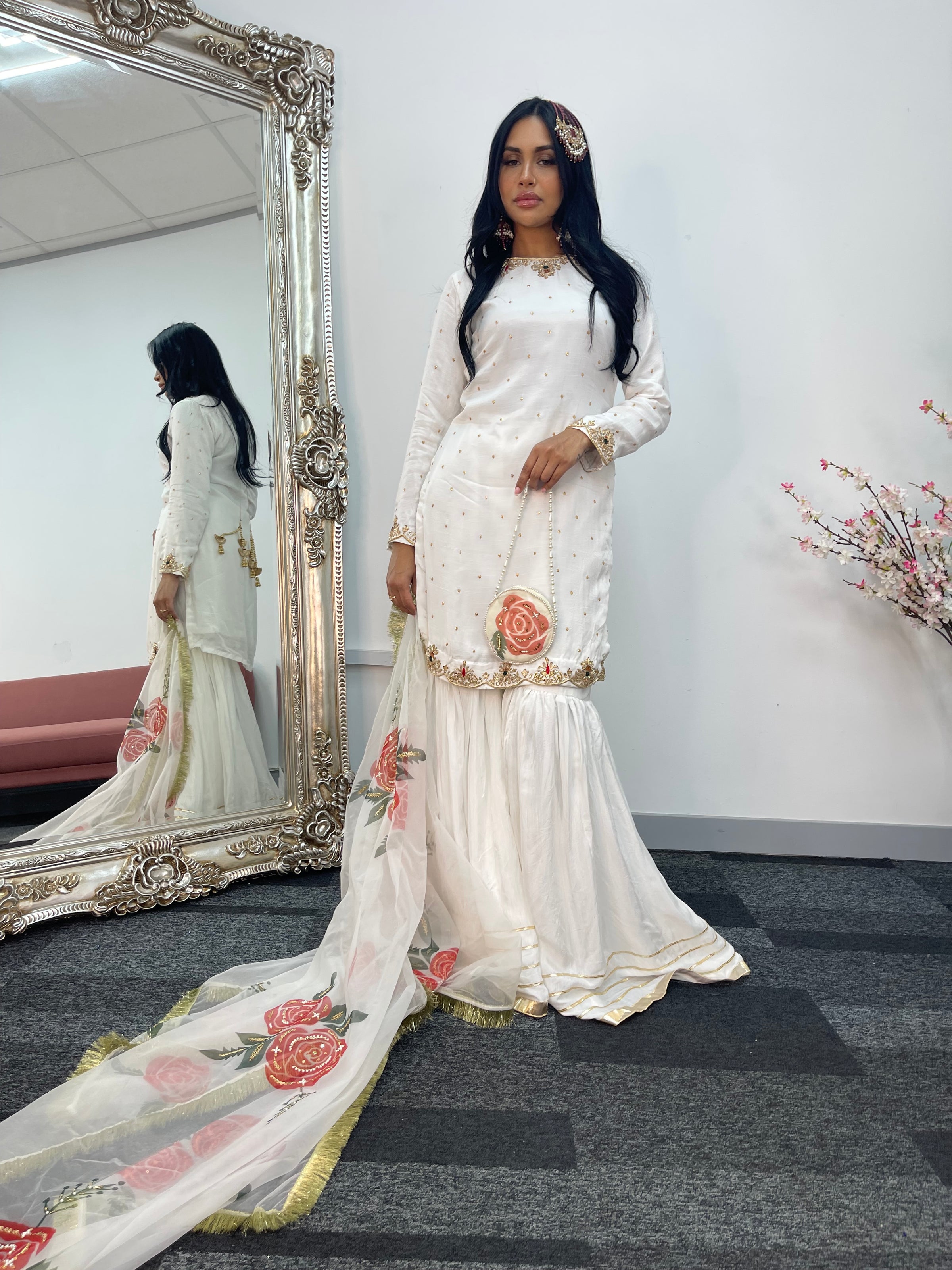 Welcome to our exclusive collection, where elegance meets tradition. Presenting our Stunning Garara Set, specifically designed for the special occasion of Nikkah.