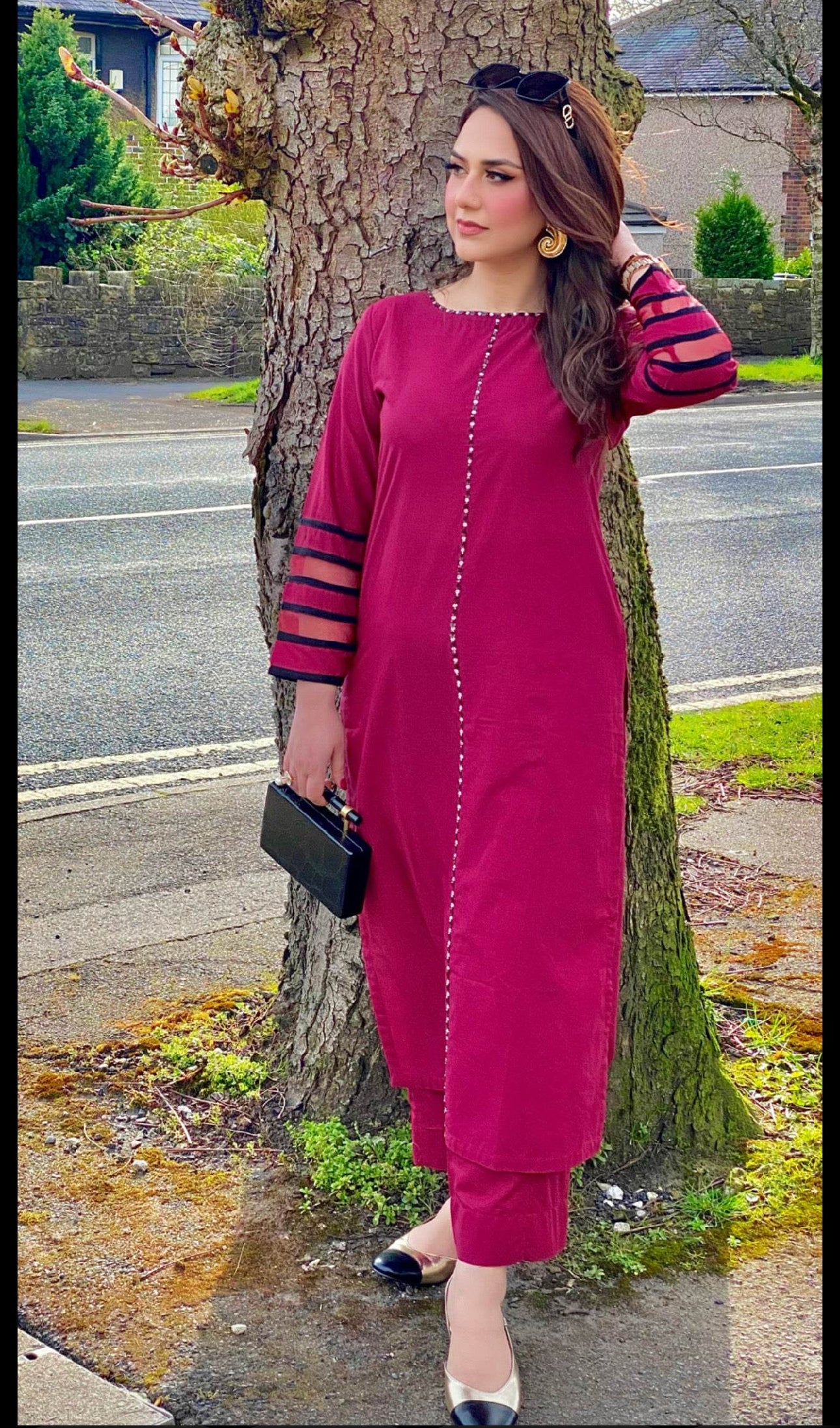 Additional Description:  Tide - it's a sensational 2 pcs design. The shirt has delicate embellishments on the front, paired up with plazo pants to complete the perfect look.