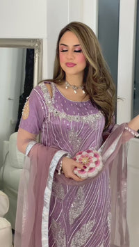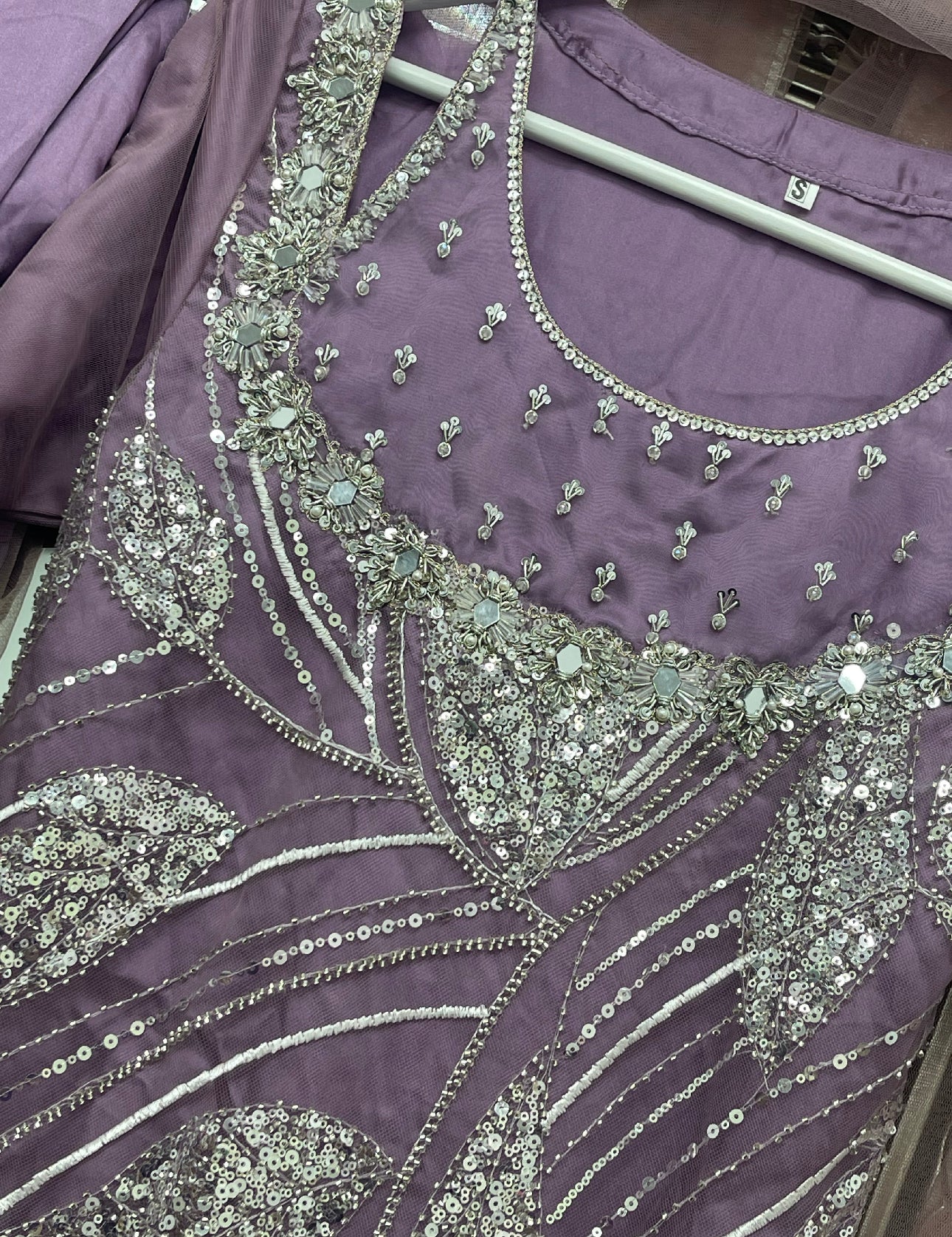 • Heavily Embroidered Front: Adorned with intricate cutdana and crystal details on the daman.