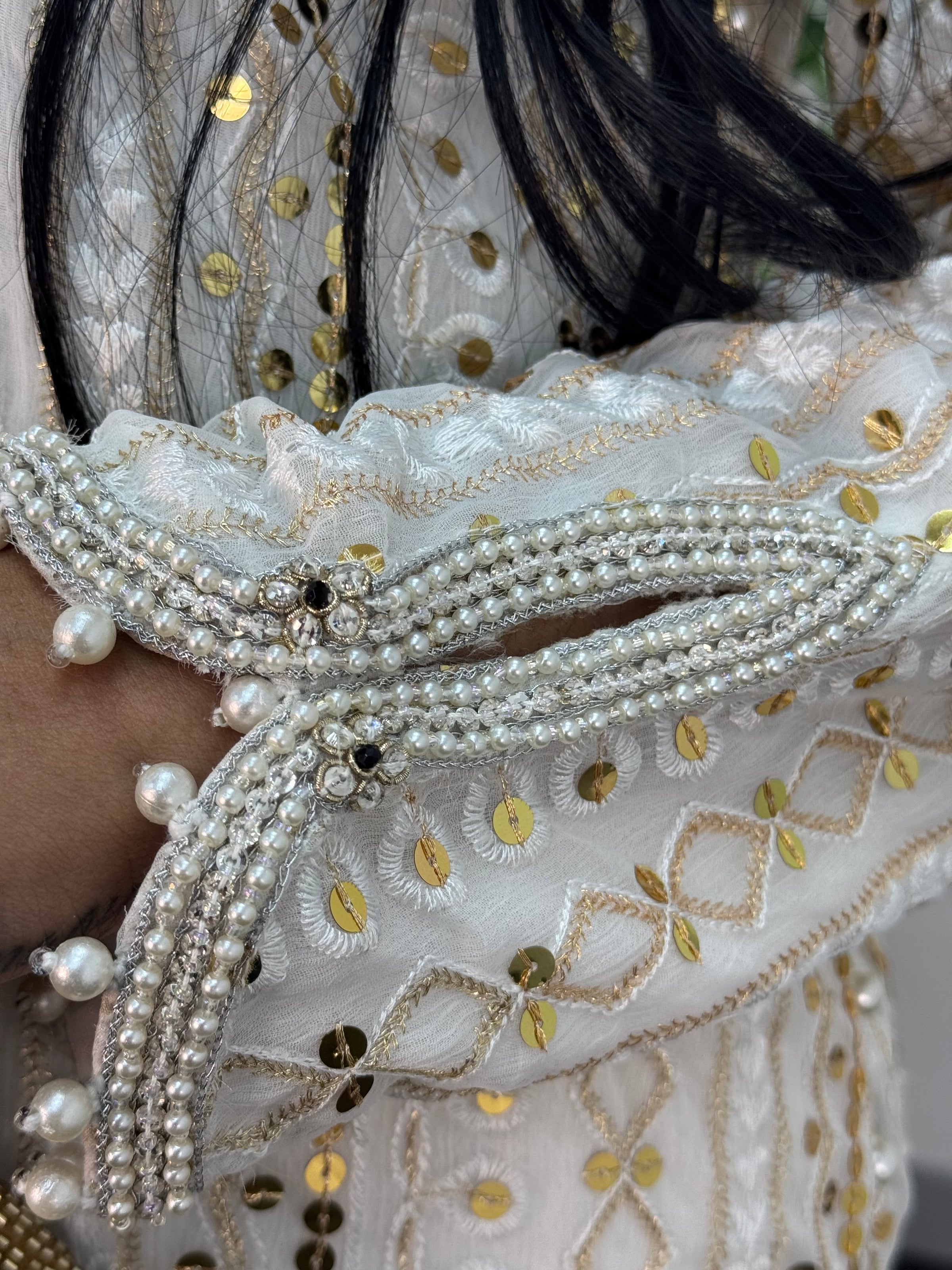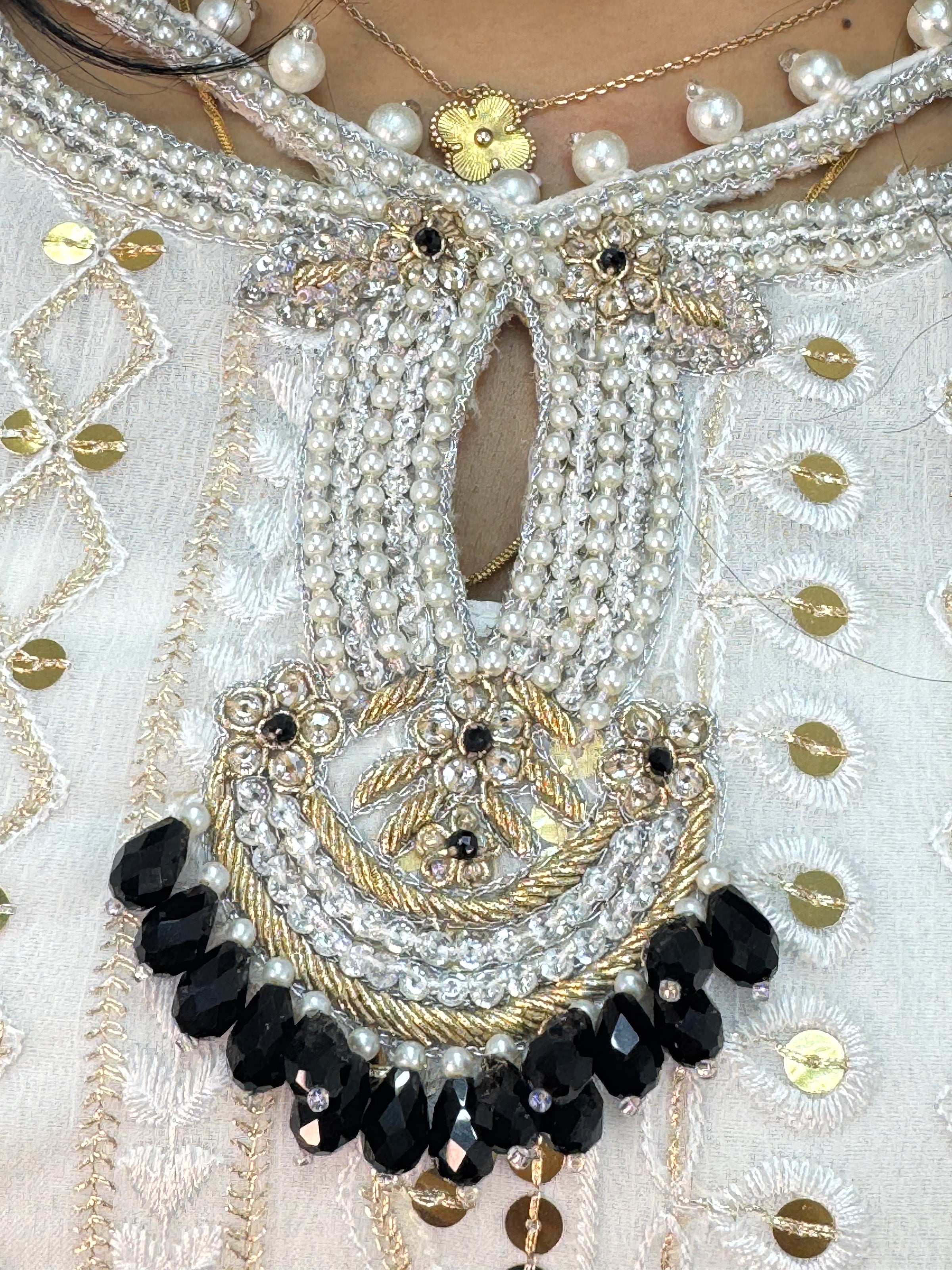 - Hand-Attached Crystals: Carefully crafted crystal embellishments grace the front and back daman, enhancing the overall aesthetic.