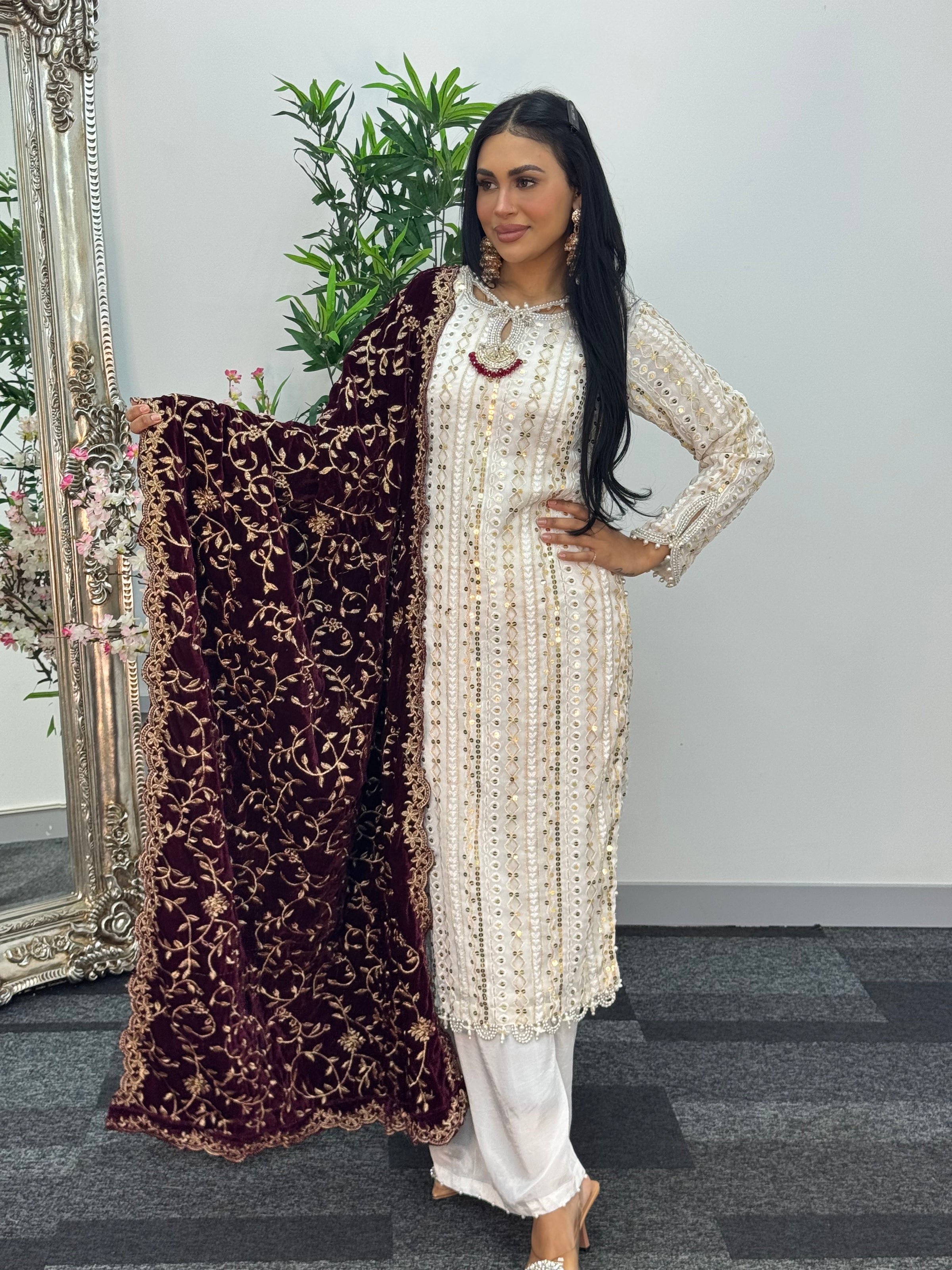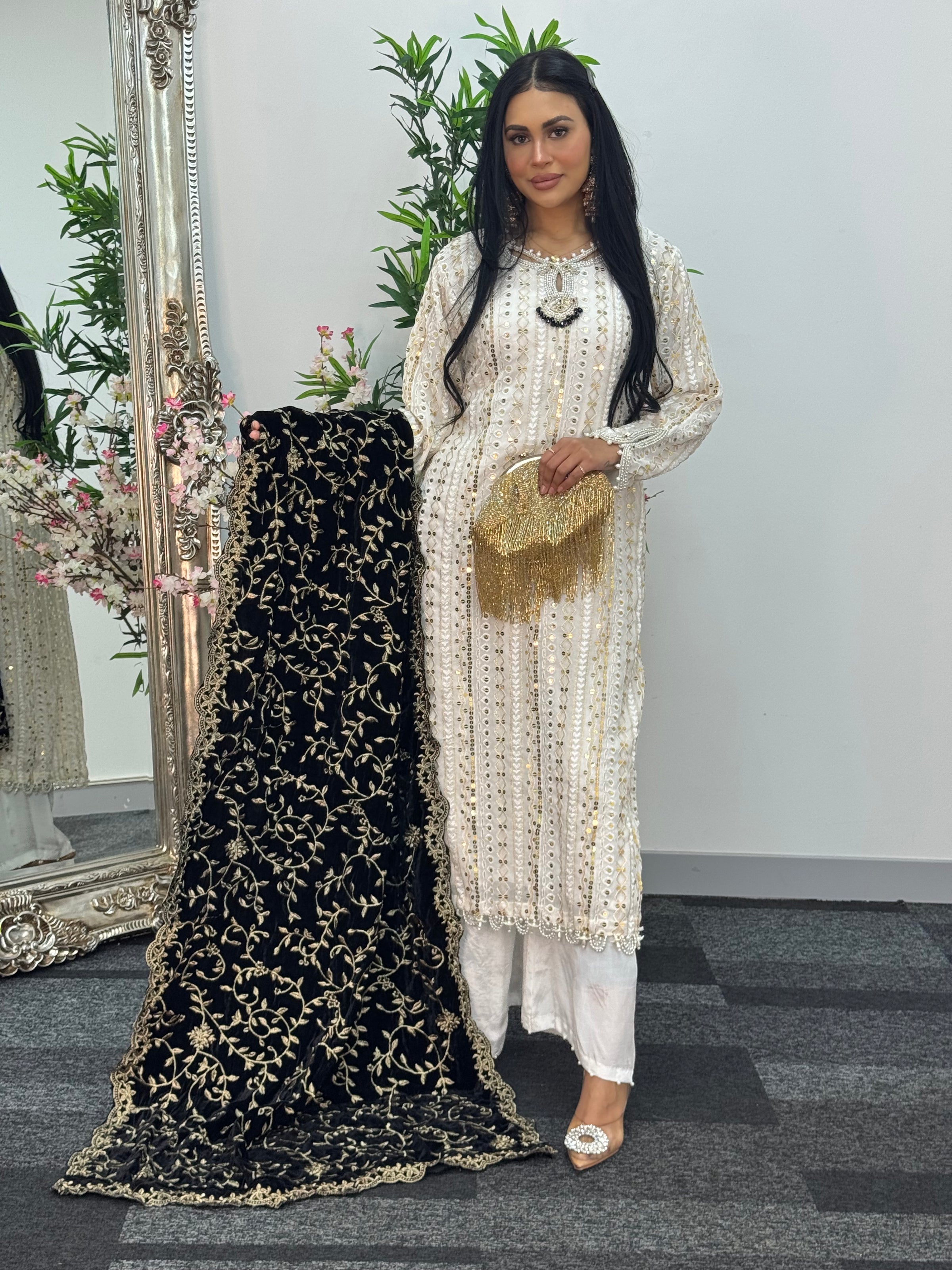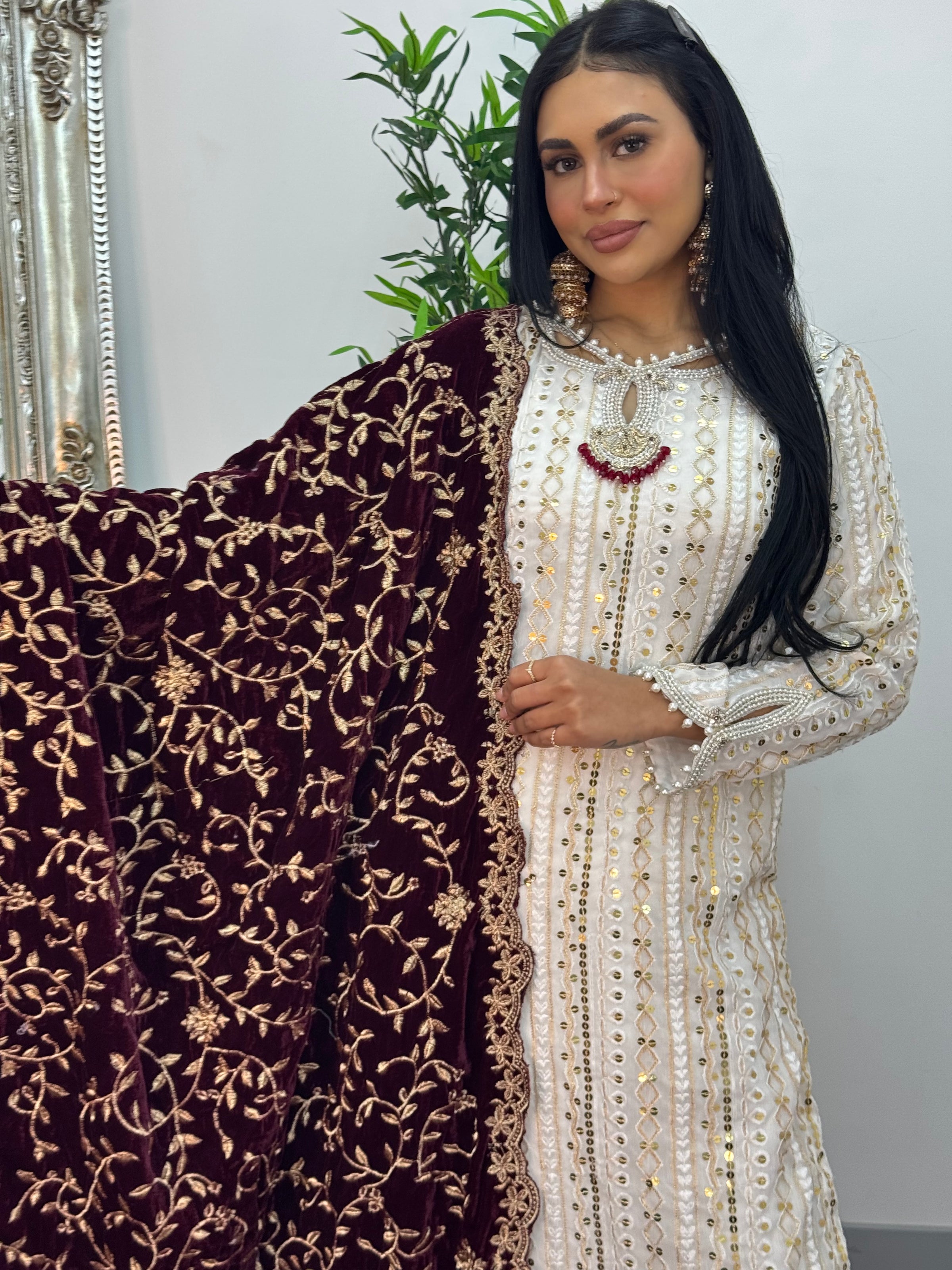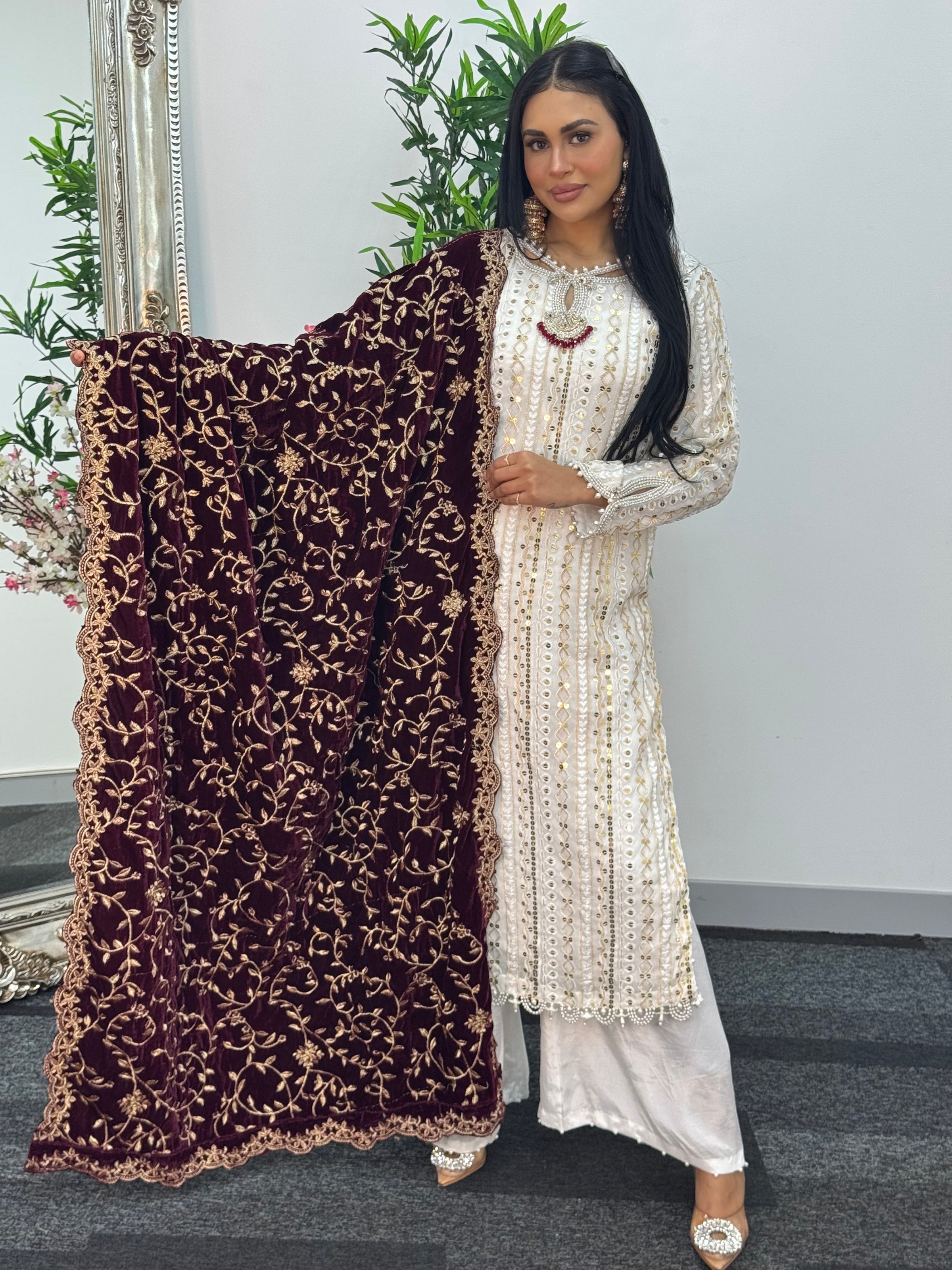 - Luxurious Shawl: Heavily embroidered velvet shawl, offering a perfect finish to your ensemble.