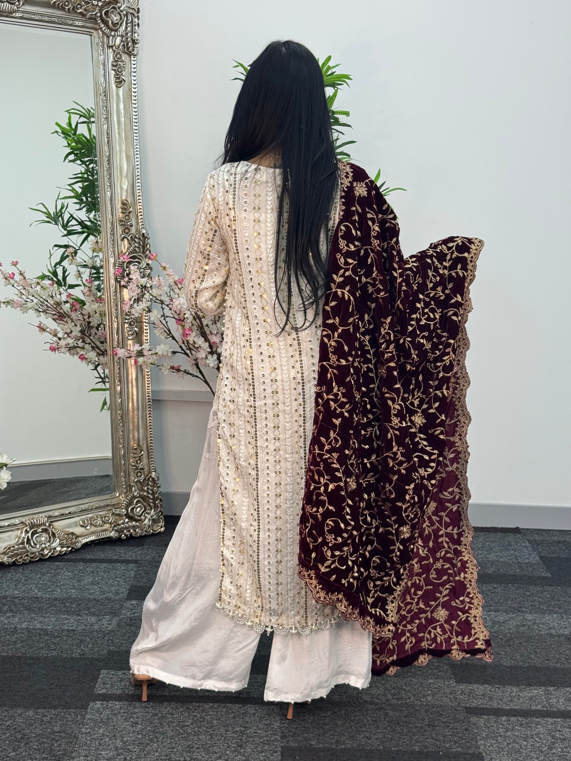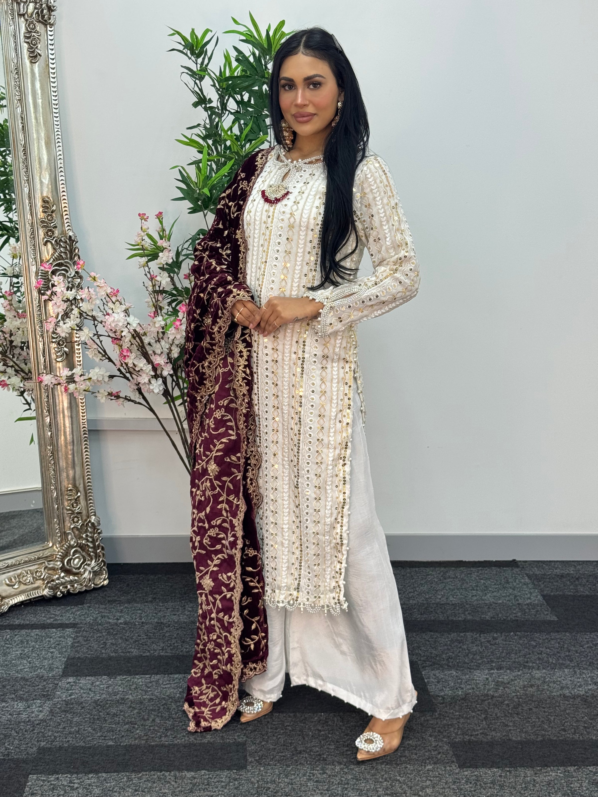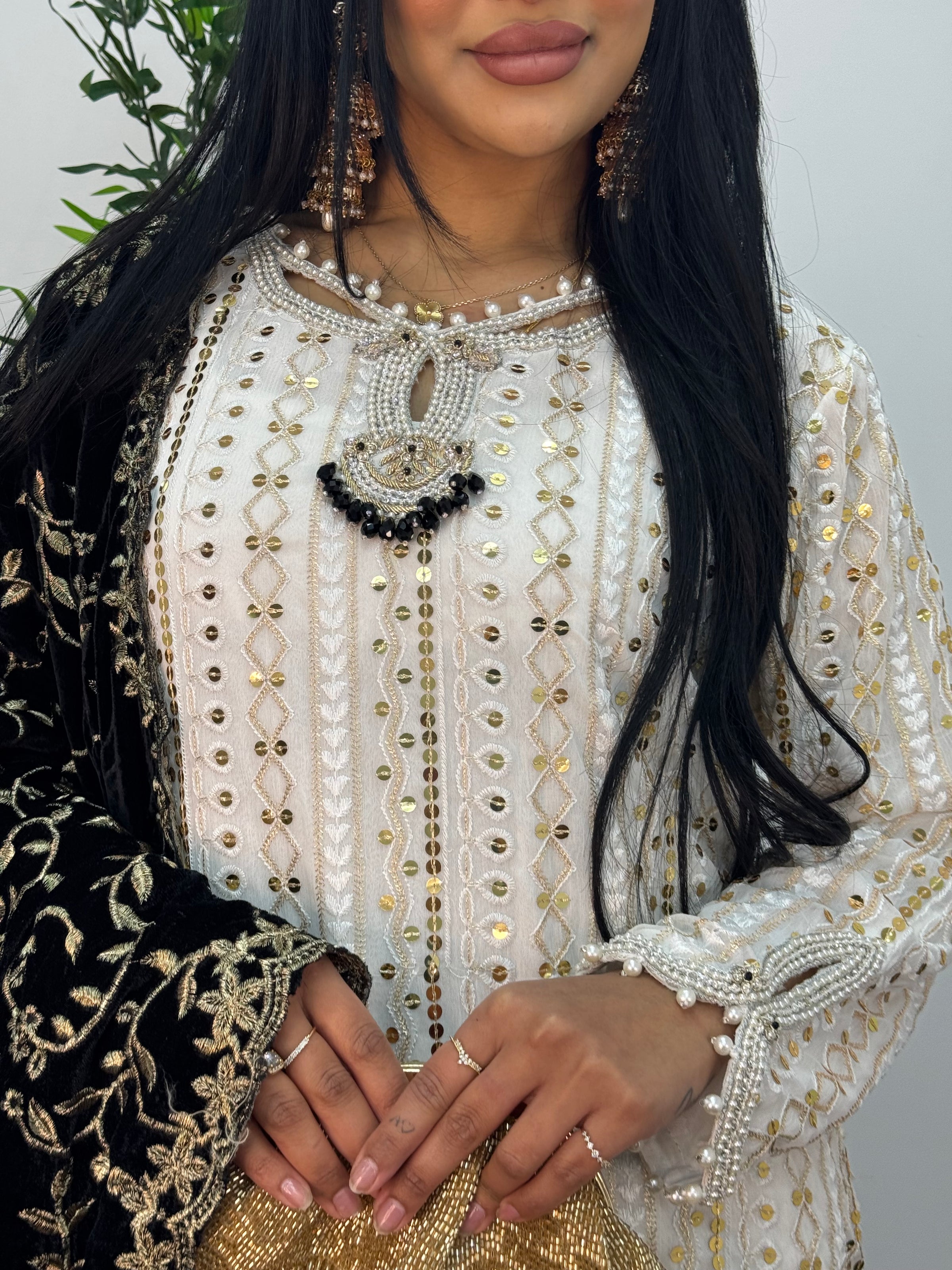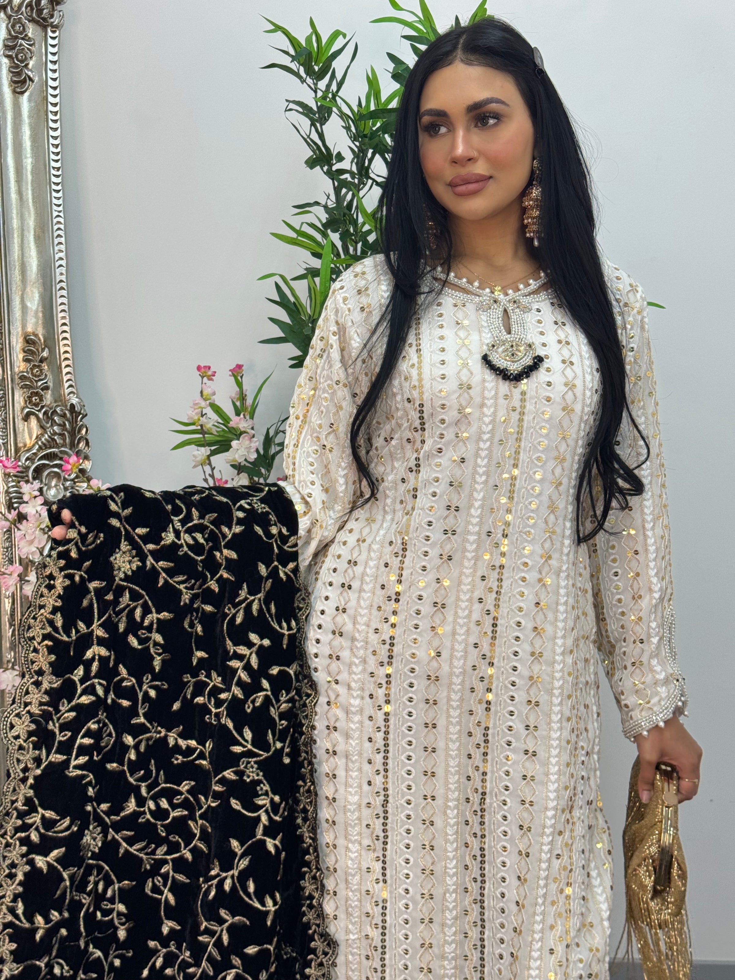 - Luxurious Shawl: Heavily embroidered velvet shawl, offering a perfect finish to your ensemble.