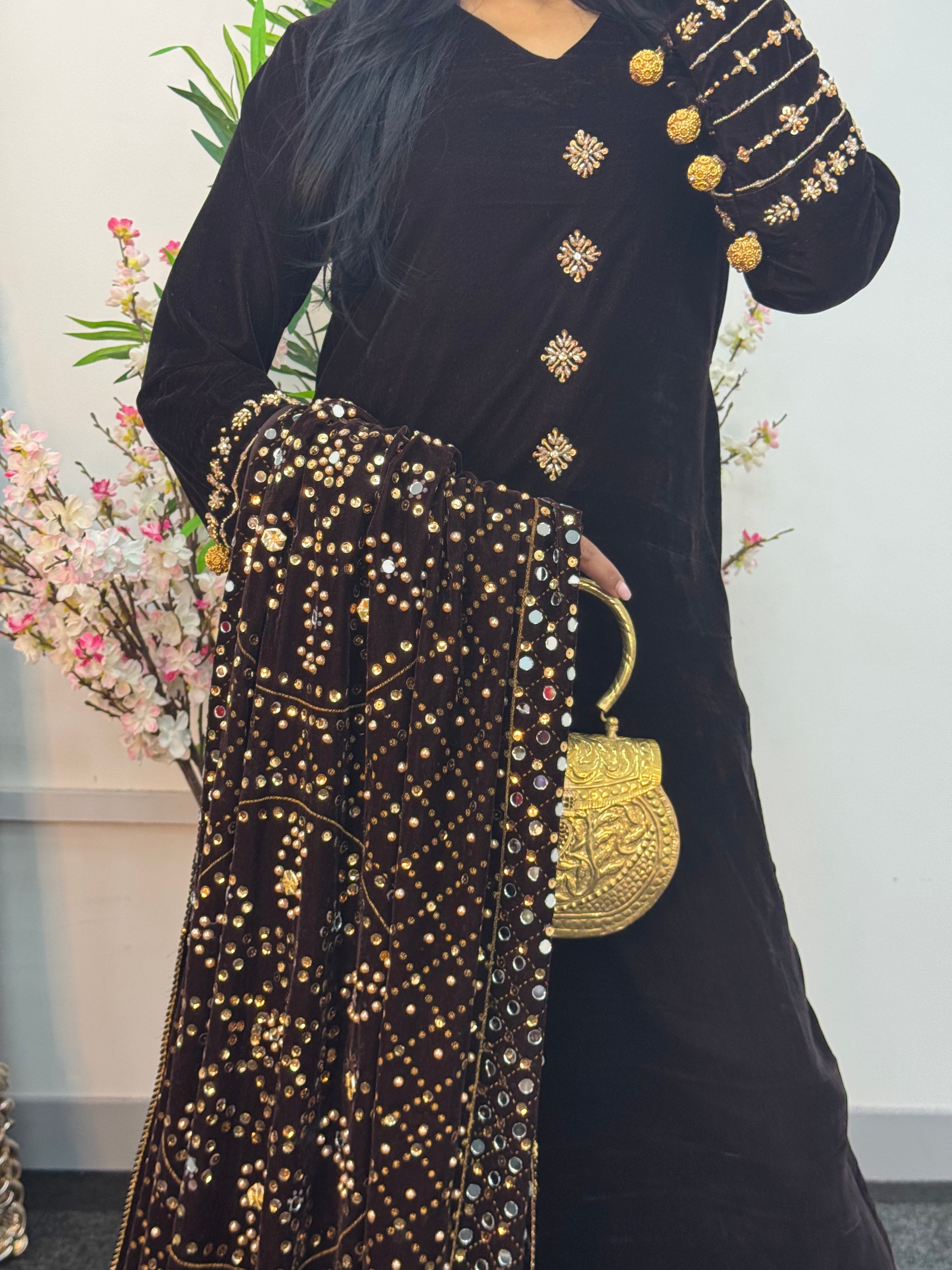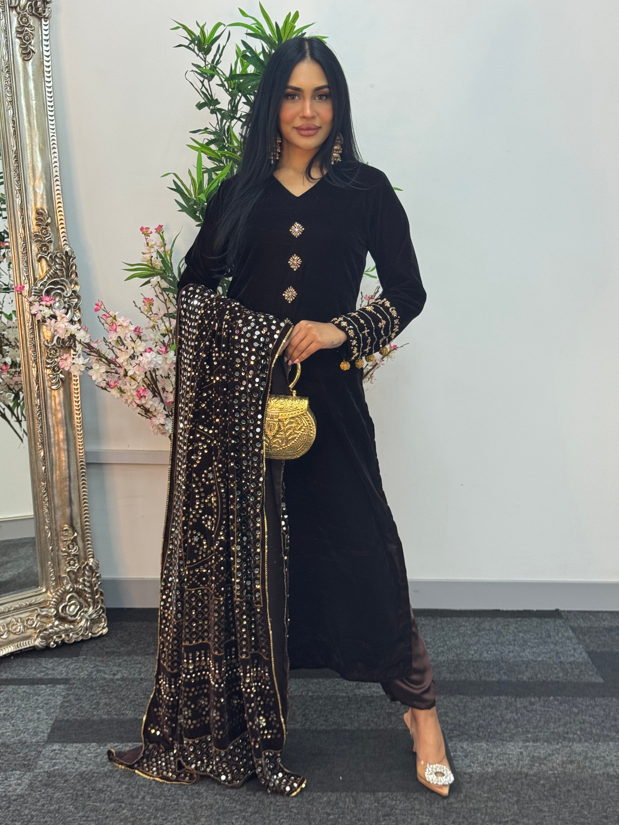 Komal - Velvet - Chocolate Brown