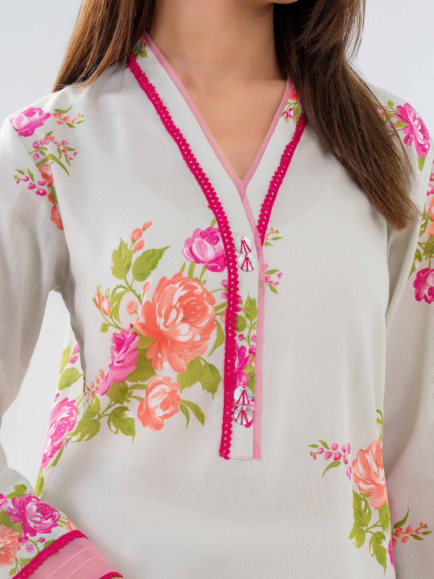 Shirt Embroidered Organza Neck Patch With Hand Embellishment Embroidered Front Center Panel Embroidered Side Panel R+L Embroidered Side Panel Patches R+L Embroidered Organza Ghera Patch 1 Embroidered Organza Ghera Patti 2 Embroidered Sleeves With Hand Embellishment Embroidered Organza Sleeves Patti Printed Back Fabric: Chiffon Dupatta Embroidered Dupatta Embroidered Organza Dupatta Patti Embroidered Organza Dupatta